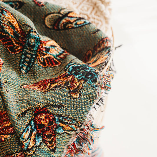 Boho 100% Cotton Woven Blanket, Moths Wall Hanging Tapestry, Cozy Throw, Butterfly Decor