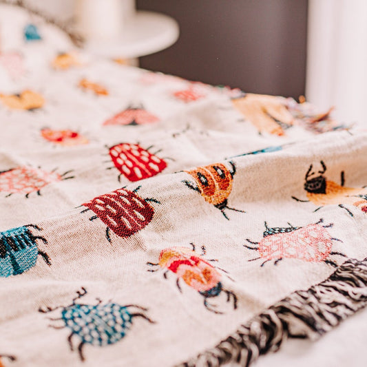 Boho 100% Cotton Woven Blanket, Beetles Wall Hanging Tapestry, Cozy Throw