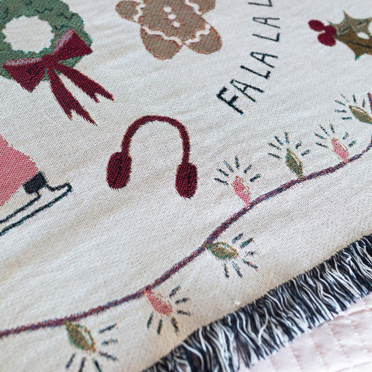 Cute Christmas 100% Cotton Woven Blanket, Holiday Winter Wall Hanging Tapestry, Rustic Farmhouse Xmas Decor Cozy Throw, Festive Gift