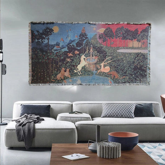 Unicorn 100% Cotton Woven Blanket, Wall Hanging Tapestry, Cozy Throw