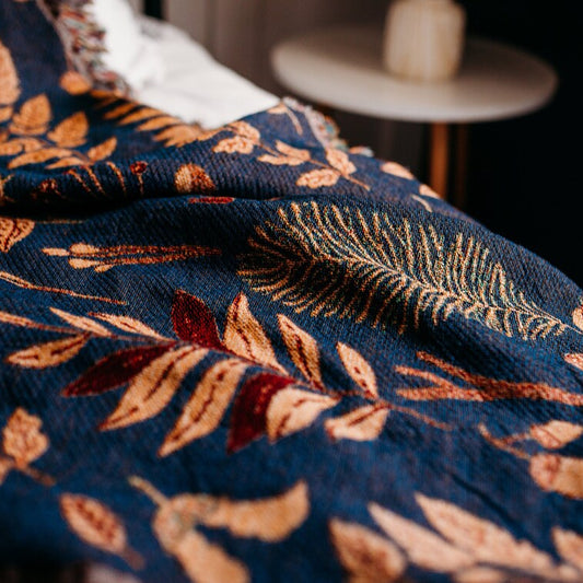 Botanical Leaves 100% Cotton Woven Blanket, Wall Hanging Tapestry, Cozy Throw, Housewarming Gifts