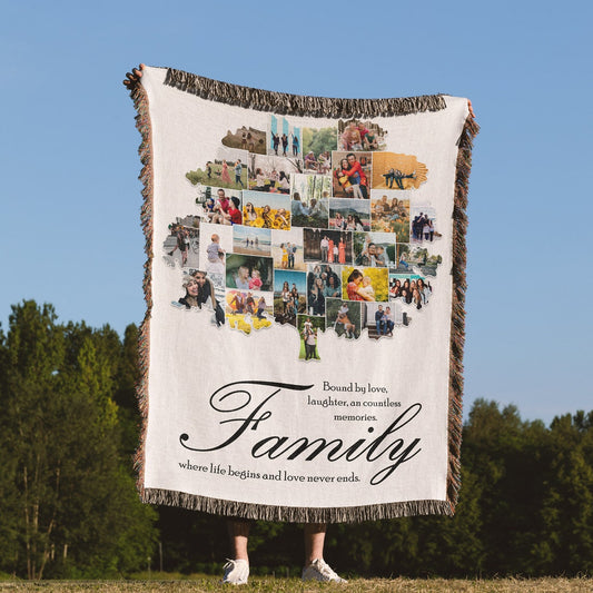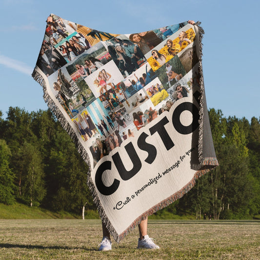 Custom Photo Collage 100% Cotton Woven Blanket, Personalized Keepsake Wall Hanging Tapestry, Cozy Throw