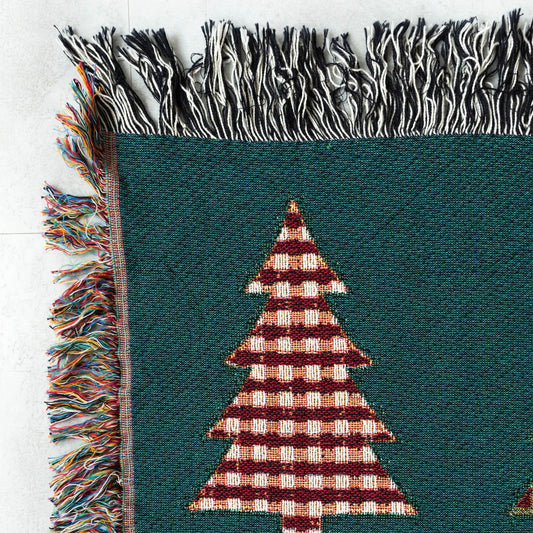 Plaid Trees Christmas 100% Cotton Woven Blanket, Holiday Winter Wall Hanging Tapestry, Rustic Farmhouse Xmas Decor Cozy Throw, Festive Gift