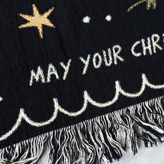 Wizarding Christmas 100% Cotton Woven Blanket, Holiday Winter Wall Hanging Tapestry, Magic Xmas Decor Cozy Throw, Festive Gift