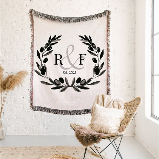 Frog Couple 100% Cotton Woven Blanket, Personalized Anniversary Gift Custom Name Wall Hanging Tapestry, Woodland Cozy Throw, Cottagecore Wedding Gifts
