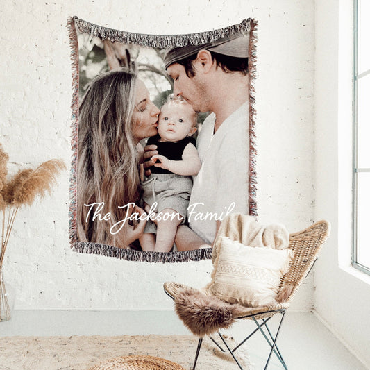 Custom Photo 100% Cotton Woven Blanket, Personalized Keepsake Wall Hanging Tapestry, Cozy Throw