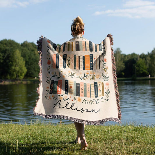 Custom Book Lovers 100% Cotton Woven Blanket, Wildflowers Bookish Wall Hanging Tapestry, Cozy Throw, Gift for Bookworm