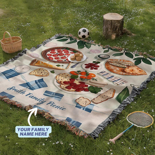Custom Picnic 100% Cotton Woven Blanket, Personalized Wall Hanging Tapestry, Cozy Throw, Cottagecore Summer