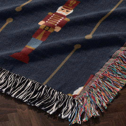Nutcracker Christmas 100% Cotton Woven Blanket, Holiday Winter Wall Hanging Tapestry, Rustic Farmhouse Xmas Decor Cozy Throw, Festive Gift