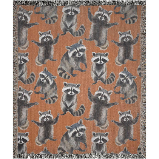 Feral Raccoon Fall 100% Cotton Woven Blanket, Cute Cozy Autumn Wall Hanging Tapestry, Cozy Throw, Cottagecore Fall Vibes for Movie Night