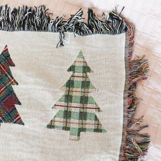 Plaid Trees Christmas 100% Cotton Woven Blanket, Holiday Winter Wall Hanging Tapestry, Rustic Farmhouse Xmas Decor Cozy Throw, Festive Gift