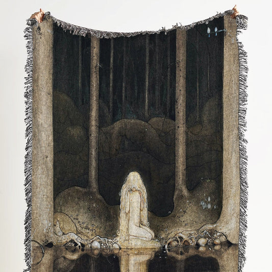 Princess Tuvstarr 100% Cotton Woven Blanket, Vintage Fairytale Wall Hanging Tapestry, Cozy Throw, Dark Nordic Folk Art, Gothic Scandinavian Fantasy Decor