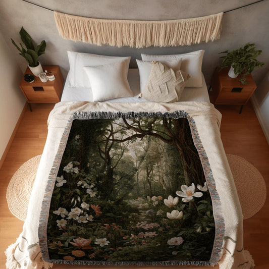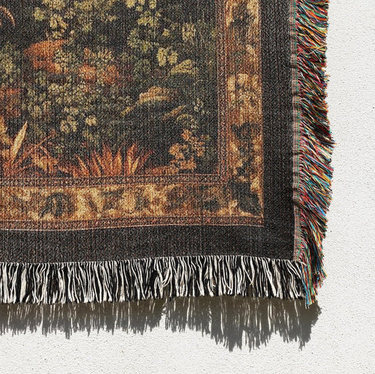 Dark Woodland 100% Cotton Woven Blanket, Whimsigoth Wall Hanging Tapestry, Cozy Throw, Victorian Gothic Aesthetic Botanical Fairy Decor