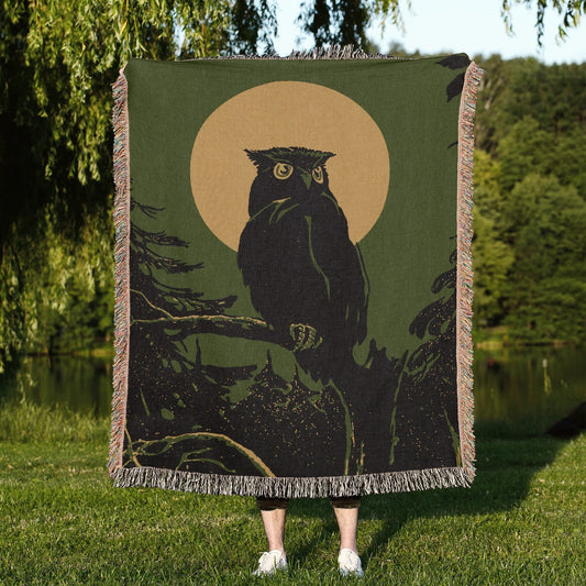Vintage American Forestry Night Owl 100% Cotton Woven Blanket, Wall Hanging Tapestry, Cozy Throw, Van Life, Indie Room Decor, Grunge Room Decor