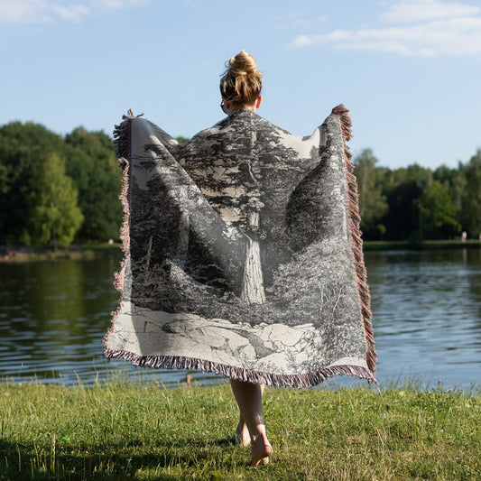 Enchanted Forest 100% Cotton Woven Blanket, Vintage Woodland Wall Hanging Tapestry, Cozy Throw, Dark Cottagecore Boho Decor, Rustic Nature Gothic Home Accent