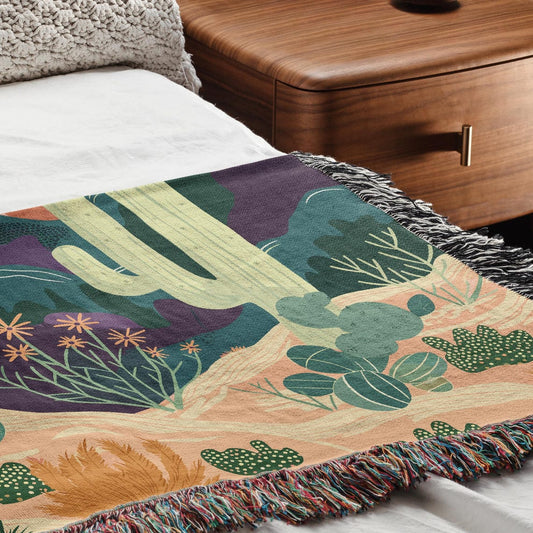 Desert Night 100% Cotton Woven Blanket, Cactus Wall Hanging Tapestry, Cozy Throw, Boho Witchy Whimsical Mystical Decor