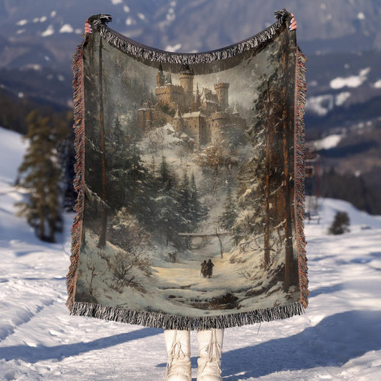 Wizard Castle 100% Cotton Woven Blanket, Wall Hanging Tapestry, Cozy Throw, Dark Academia Book Nook Decor for Fantasy Lovers