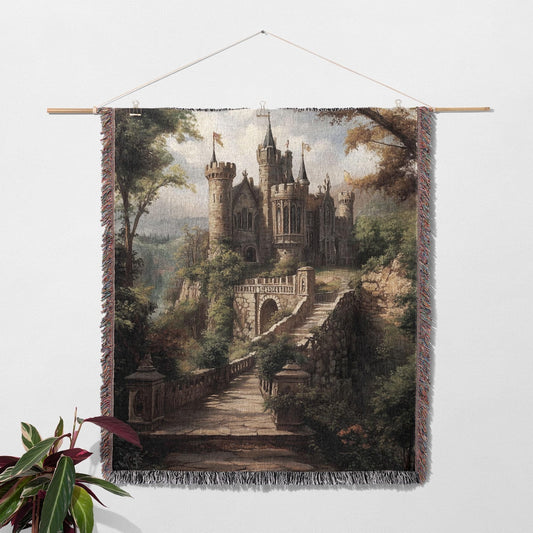 Medieval Castle 100% Cotton Woven Blanket, Fantasy Wall Hanging Tapestry, Cozy Throw, Gothic Home Decor