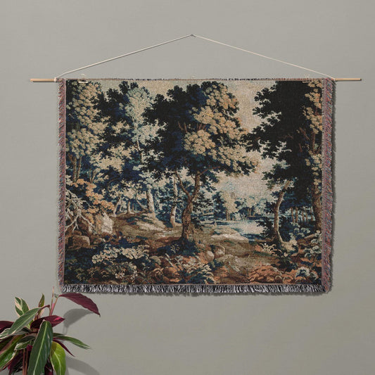 Woodland 100% Cotton Woven Blanket, Antique European Wall Hanging Tapestry, Cozy Throw, Home Decor Gifts