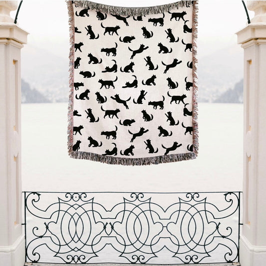 Cat 100% Cotton Woven Blanket, Wall Hanging Tapestry, Cozy Throw, Housewarming Cat Lover Gift
