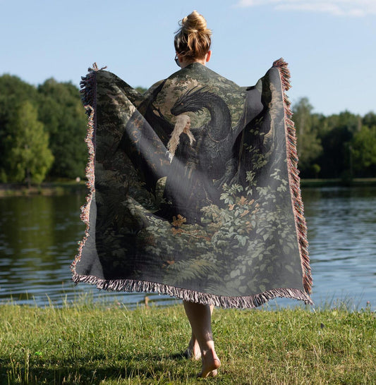 Dragon 100% Cotton Woven Blanket, Mysticism Gift Fairycore Wall Hanging Tapestry, Enchanted Aesthetic Cozy Throw, Artful Fantasy