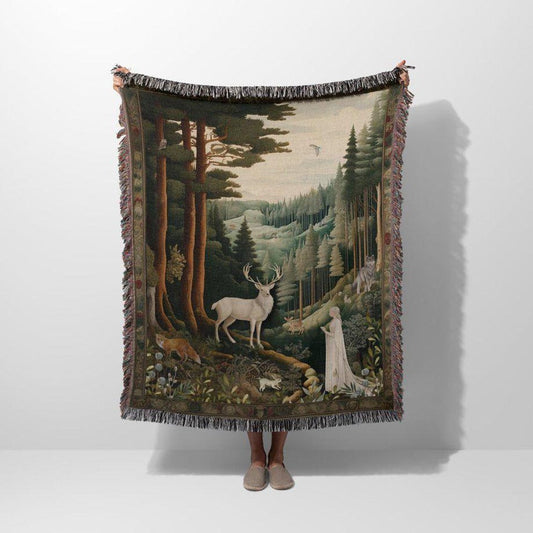 Folklore Dragon 100% Cotton Woven Blanket, Medieval Aesthetic Fairytale Inspired Wall Hanging Tapestry, Cottagecore Style Fairycore Cozy Throw