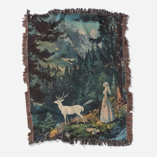 TOG 100% Cotton Woven Blanket, Fantasy Romance & Stag Wall Hanging Tapestry, Cozy Throw, Bookish Gift for Readers