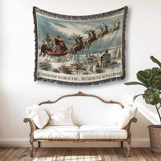 Christmas Santa 100% Cotton Woven Blanket, Vintage Snowy Sleigh Scene Wall Hanging Tapestry, Cozy Throw, Aesthetic Holiday Home Decor, Christmas Lover Gift