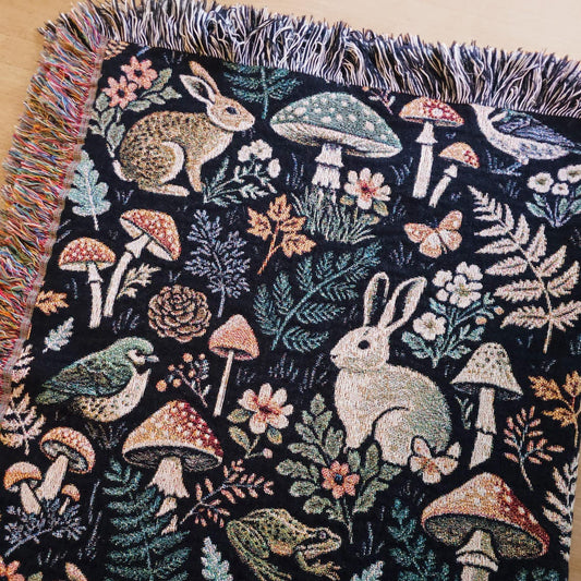 Dark Woodland 100% Cotton Woven Blanket, Whimsigoth Wall Hanging Tapestry, Cozy Throw, Victorian Gothic Aesthetic Botanical Fairy Decor