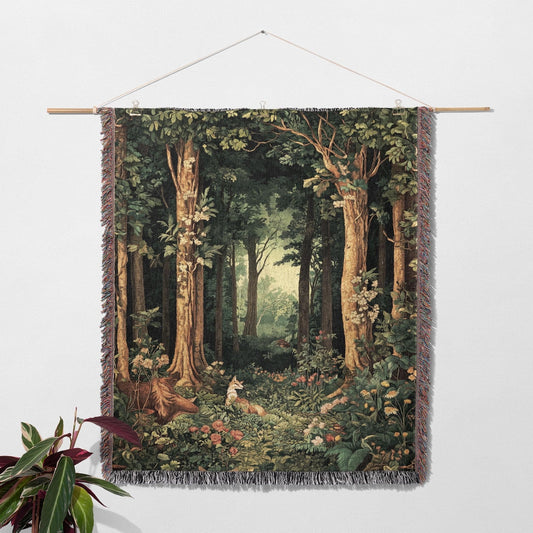 Enchanted Forest 100% Cotton Woven Blanket, Nature Wall Hanging Tapestry, Woodland Cozy Throw, Home Decor Gifts
