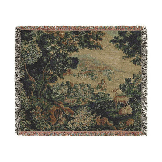 Woodland 100% Cotton Woven Blanket, Antique European Wall Hanging Tapestry, Cozy Throw, Home Decor Gifts